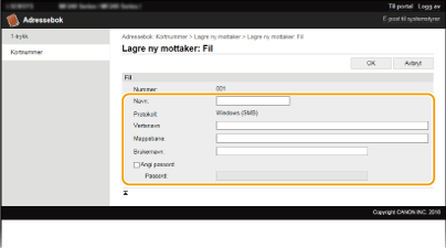 Du kan registrere eller redigere adresseboken på maskinen ved å bruke datamaskinen. Spesifiser den delte mappemottakeren her.