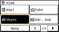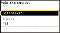 Det å skanne et dokument og lagre det på en datamaskin kan gjøres helt fra maskinen. Du skanner mens du angir hvilken datamaskin dokumentene skal lagres på, om dokumentene skal skannes i farger eller svart/hvitt, om dokumentene skal lagres som PDF- eller JPEG-filer, og andre innstillinger.