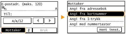 Tresifrede numre (kortnumre) er tilordnet adresser i adresseboken. Du kan spesifisere en adresse ved å bare angi kortnumret.