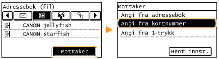 Hvis du vil bruke kortoppringing, må mottakeren være registrert i adresseboken på forhånd. Registrere mottakere i adresseboken