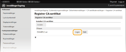 Klikk på [Lagre] til høyre for CA-sertifikatet du vil registrere.
