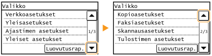 . Näyttö vaihtuu sivu sivulta ja sivunumero näytetään vierityspalkissa.