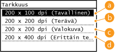 Voit valita asiakirjatyypille sopivan tarkkuuden. Mitä suurempi tarkkuus on, sen selkeämpi kuvasta tulee, mutta sen lähettäminen vie kauemmin.