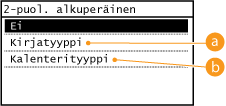 Valitse <Kirjatyyppi> tai <Kalenterityyppi>