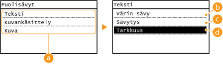 Kohdassa <Tummuus> määritetyt asetukset poistetaan käytöstä, kun <Väriaineen säästö> otetaan käyttöön.