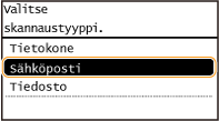 Jos haluat lähettää sähköposteja suoraan laitteesta, valmistelut, mukaan lukien postipalvelimen asetusten määrittäminen, täytyy tehdä etukäteen. Skannausasetusten määrittäminen (sähköpostin lähettäminen)