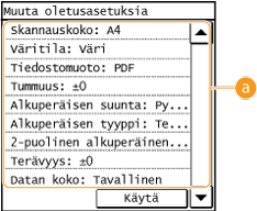 -painiketta. Jos muutat nämä oletusasetukset vastaamaan useimmin tekemiäsi toimintoja, sinun ei tarvitse määrittää samoja asetuksia uudelleen joka kerran, kun skannaat.
