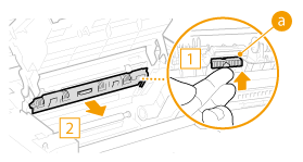 Avaa paperinpoisto-ohjain vetämällä itseäsi kohden samalla, kun painat painiketta (