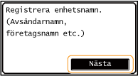 Registrera enhetens faxnummer och enhetsnamn. Informationen skrivs ut överst på varje sida som du sänder från enheten.