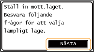 Välj mottagningsläget genom att trycka på <Ja> eller <Nej>.