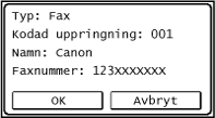 <Ja>.Om du angett Gruppuppringning i steg 2, visas "XX mottagare". Om du trycker på Antal mottagare visas mottagare som registrerats i gruppen.