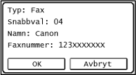 <Ja>.Om du angett Gruppuppringning i steg 2, visas "XX mottagare". Om du trycker på Antal mottagare visas mottagare som registrerats i gruppen.