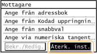 / för att växla mellan mottagare du angett. Visa den mottagare som du vill ta bort och tryck på . |