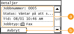 . Du kan också avbryta faxsändningen när du har kontrollerat faxstatus.