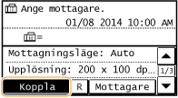 Om en extern telefon eller tillvalsluren är ansluten till enheten, kan du lyfta på luren i stället för att trycka på <Koppla>.