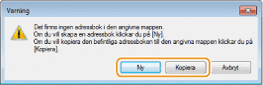 Klicka på [Ny] när du vill skapa en ny, tom adressbok. Klicka på [Kopiera] och spara den på en annan plats om du vill behålla innehållet i den nuvarande adressboken.