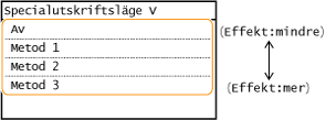 Om du anger <Av> eller <Metod 1> kan ränder uppträda på papperet. Om du anger <Metod 3> eller <Metod 4> kan konturerna bli suddiga eller bilderna bli gryniga. Utskriftstätheten minskar när inställningen går från <Av> till <Metod 4>.