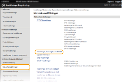 Aktivera Google Cloud Print-funktionen för enheten. Du kan även inaktivera Google Cloud Print-funktionen för enheten.