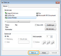Tryck eller klicka på [Skriv ut] i programmenyn enhetens faxdrivrutin [Skriv ut].Om du skriver ut med den här metoden är bara ett begränsat antal utskriftsinställningar tillgängliga.