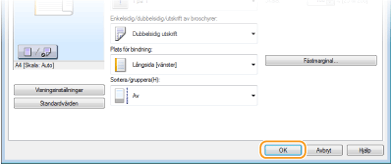 Klickbart användargränssnittDu kan intuitivt ange sidlayout, bindningsplats m.m. på förhandsgranskningsbilden. Mer information får du om du klickar på [Hjälp] på skrivardrivrutinsskärmen.