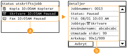 <Status utskriftsjobb>