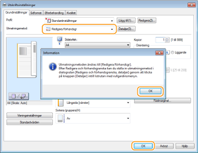 Välj [Redigera/förhandsgr] i [Utmatningsmetod].