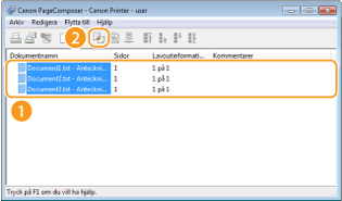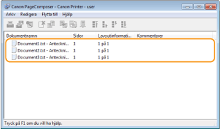 Dokumenten läggs till i Canon PageComposer.
