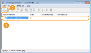 Om du använder Canon PageComposer kan du kombinera flera dokument till ett utskriftsjobb med angivna utskriftsinställningar. Med den här funktionen kan du kombinera dokument som skapats med olika program och skriva ut sidorna i samma pappersformat.