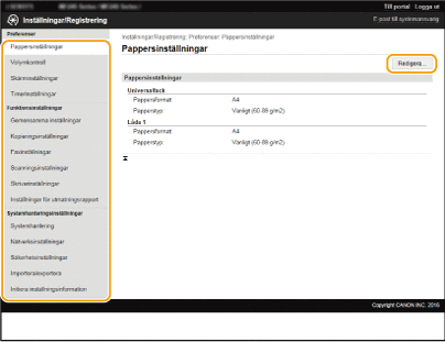 Vissa inställningar kräver att du först loggar in i systemansvarigsläge innan du kan ändra dem.