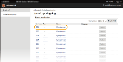 Du kan ta bort ett registrerat alternativ genom att klicka på motsvarande knapp för [Ta bort].