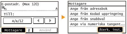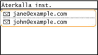 Du kan välja en mottagare bland de tre senaste mottagarna. Om du anger en tidigare använd mottagare ställs samma skanningsinställningar in som du använde senaste gången du skickade dokument till samma mottagare.