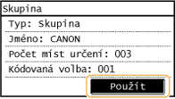 Pomocí číselných tlačítek zadejte jméno a klepněte na tlačítko <Použít>.