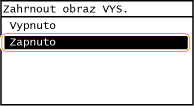 Když vyberete <Zapnuto> nebo <Jen dojde-li k chybě>, může být do hlášení zahrnuta část faxu. Nastavte položku <Zahrnout obraz VYS.> na možnost <Zapnuto>.