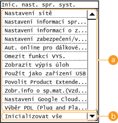 <Nastavení sítě> <Inicializovat nastavení sítě> <Ano> Restartujte zařízení |