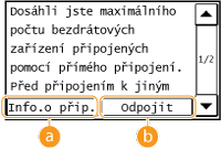 Zastaví postup přímého připojování. Když tisknete, skenujete nebo když se dokončí jiná požadovaná operace, klepněte na toto tlačítko, čímž se připojení ukončí.