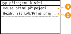 Zobrazí se obrazovka pro výběr způsobu přímého připojení.