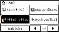 Na obrazovce <Domů> klepněte na možnost <Přímé přip.>. Tiskárna se přepne do stavu, kdy k ní budete moci připojit mobilní zařízení.