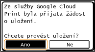 Zařízení lze také zaregistrovat z mobilního zařízení nebo aplikace Google Chrome*. Před dokončením registrace se na displeji zařízení objeví obrazovka s potvrzením. Registraci dokončíte klepnutím na tlačítko <Ano>.