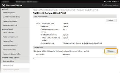 Klikněte na tlačítko [Ukládám] v části [Stav uložení].