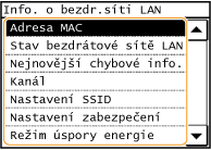 ![]() <Stav bezdrátové sítě LAN> a <Nejnovější chybové info.> lze zobrazit pomocí