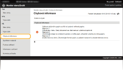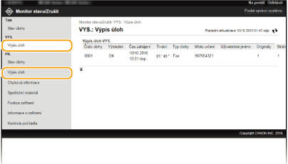 Podrobnosti faxu, který čeká na vytištění, zobrazíte kliknutím na tlačítko [Číslo úlohy]. Můžete zkontrolovat odesílatele, počet výtisků, přijaté obrázky a další informace. Zobrazení náhledu dokumentů pomocí Vzdáleného uživatelského rozhraní