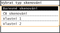 Umístěte do zařízení dokument a klepněte na tlačítko <Scan -> PC1> nebo <Scan -> PC2>. Skenování začne okamžitě. Pod tlačítkem lze také uložit typ skenování (barevné nebo černobílé), cílové umístění pro uložení dokumentu a další nastavení, pomocí nichž lze dokument skenovat. Tato část popisuje, jak nastavení uložit pod tlačítkem a použít při skenování.