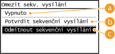 Vyberte možnost <Potvrdit sekvenční vysílání> nebo <Odmítnout sekvenční vysílání>.