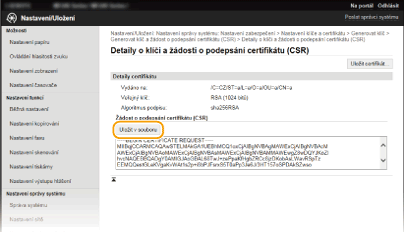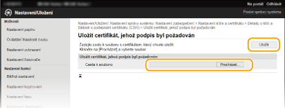 Klikněte na tlačítko [Procházet], zadejte soubor, pro který chcete žádat o podepsání certifikátu (CSR), a klikněte na tlačítko [Uložit].