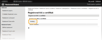 Klikněte na [Registruji klíč a certifikát] nebo [Registrovat certifikát CA].