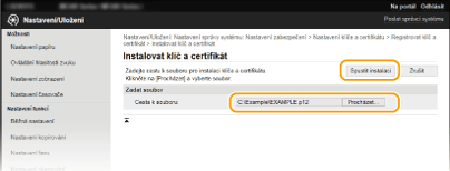Kliknutím na možnost [Nastavení klíče a certifikátu] nainstalujte pár klíčů. Kliknutím na možnost [Nastavení certifikátu CA] nainstalujte certifikát CA.