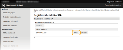 Klikněte na tlačítko [Uložit] nacházející se vpravo od certifikátu CA, který chcete uložit.
