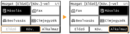 A gomb mozgatásához érintse meg az <Előző> vagy a <Következő> gombot, majd érintse meg az <Alkalmaz> gombot.