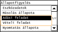 ![]() <Adás állapota>/<Faxvétel állapota>Megjeleníti a küldés és vétel alatt lévő, illetve feldolgozásra váró dokumentumok listáját.