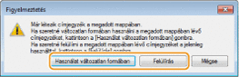 Ha az 5. lépésben megadott mentési helyen már léteznek címjegyzékadatok, akkor a következő üzenet jelenik meg. Ha a meglévő címjegyzéket kívánja használni, kattintson a [Jelenlegi megtartása] gombra, ha felül szeretné írni a jelenlegi Címjegyzékkel, kattintson az [Felülírás] gombra.